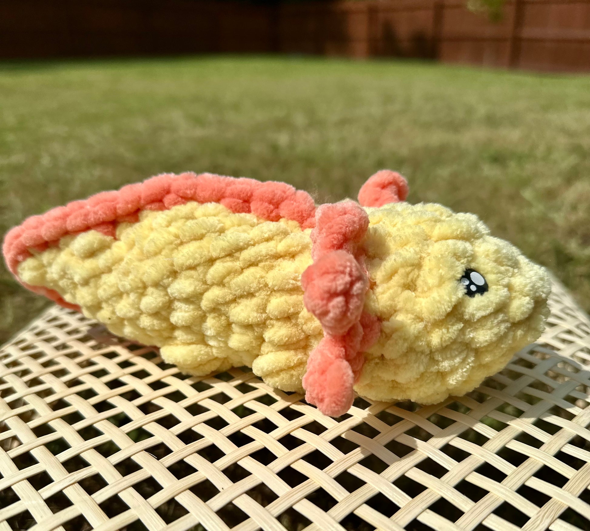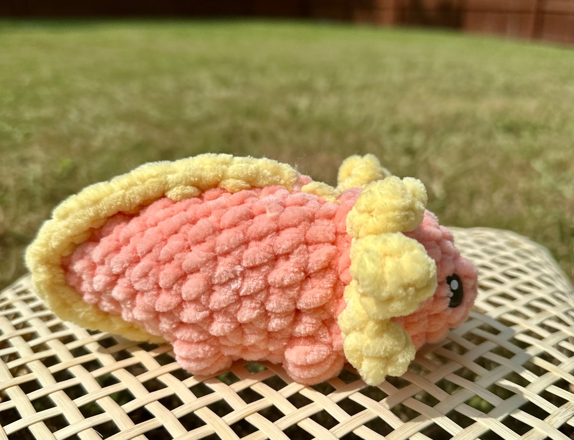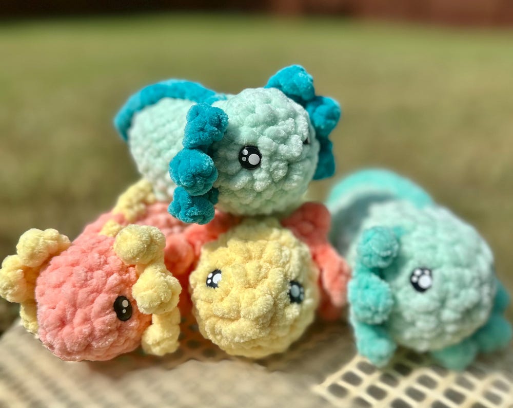These little axolotls were handmade by me. I used super soft lovable yarn. Each axie is 2.5 inches tall and 6.5 inches long.
