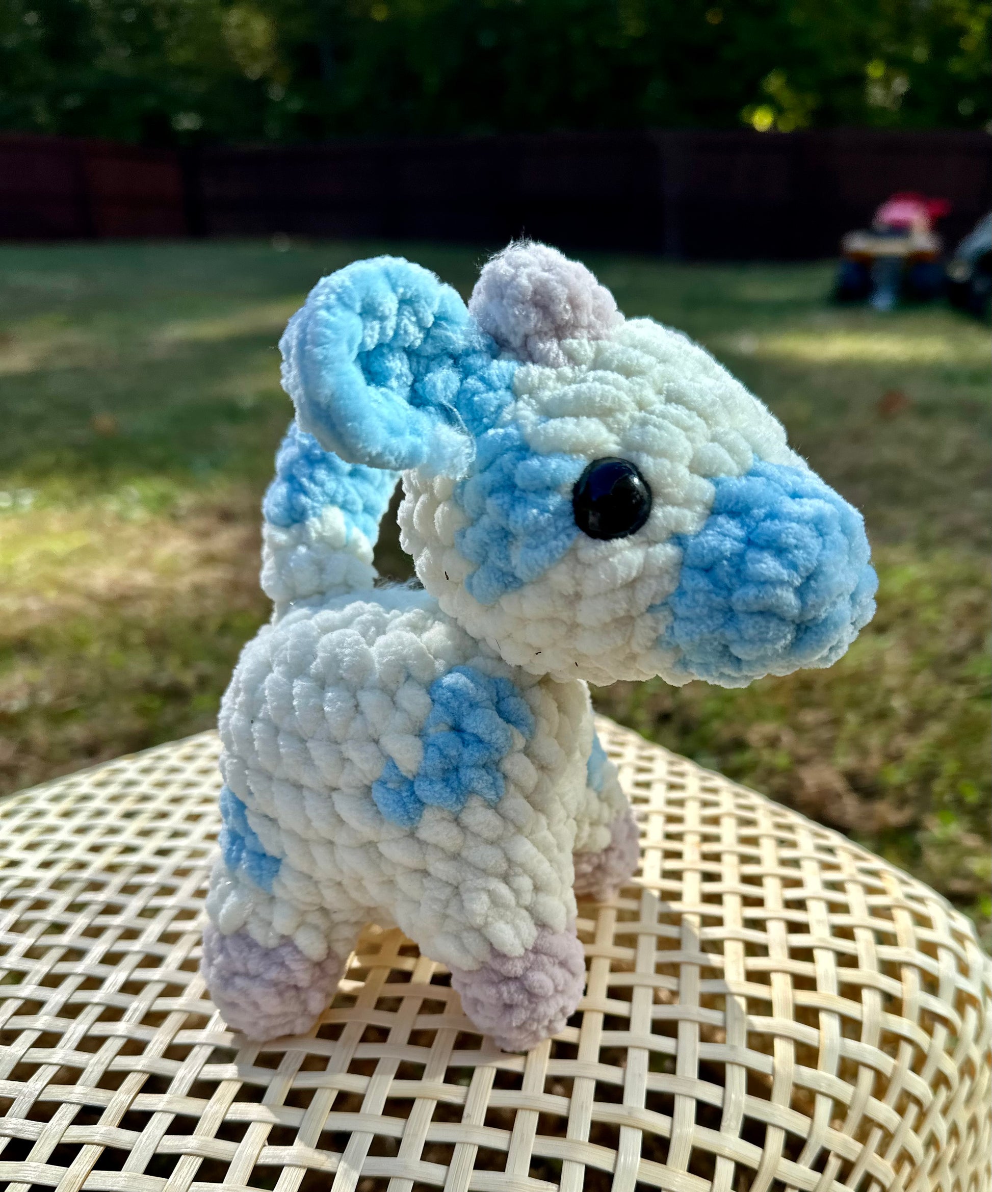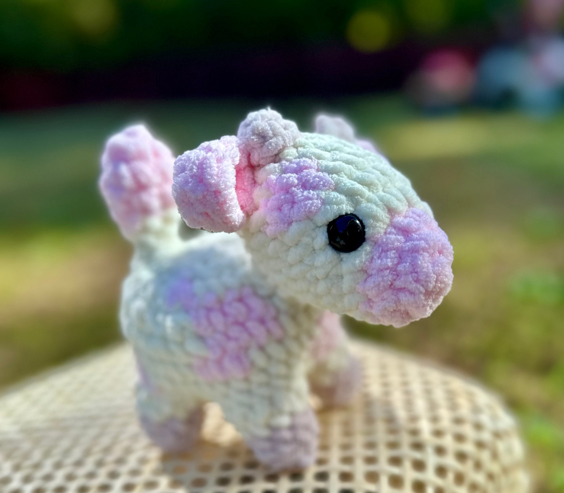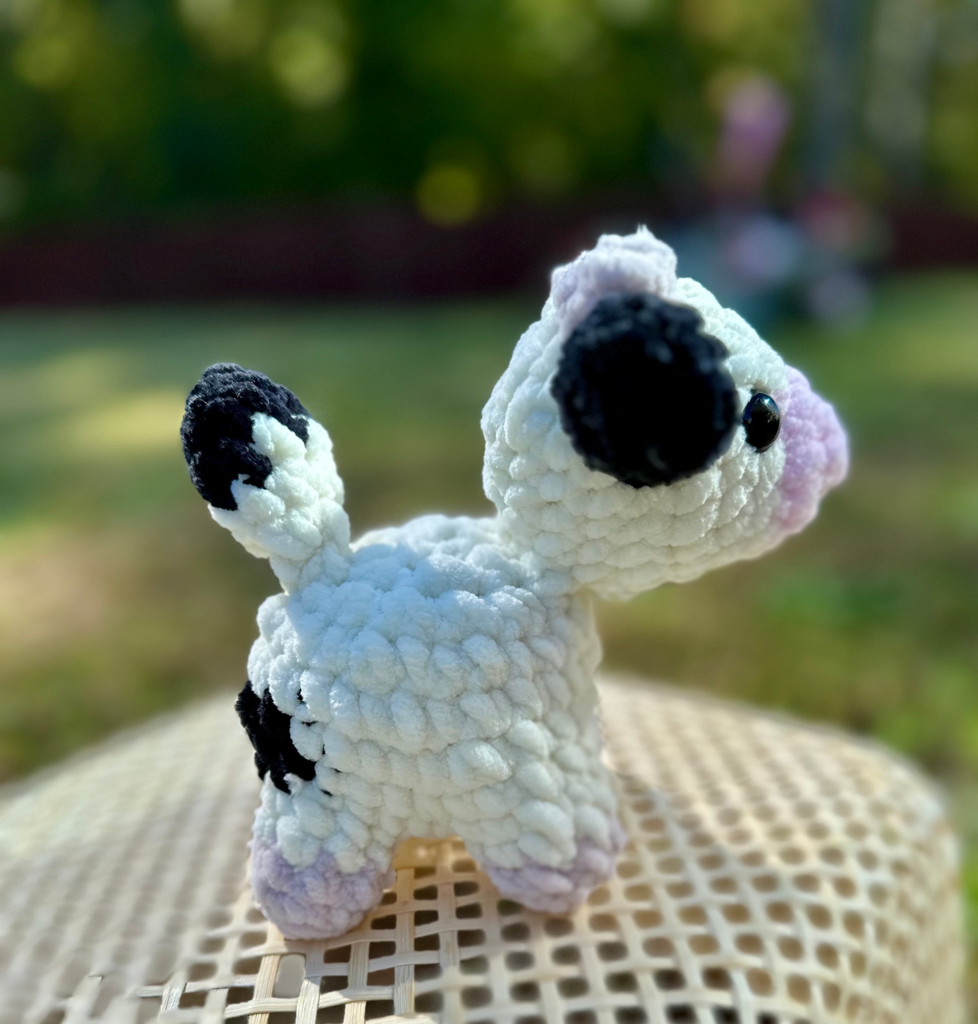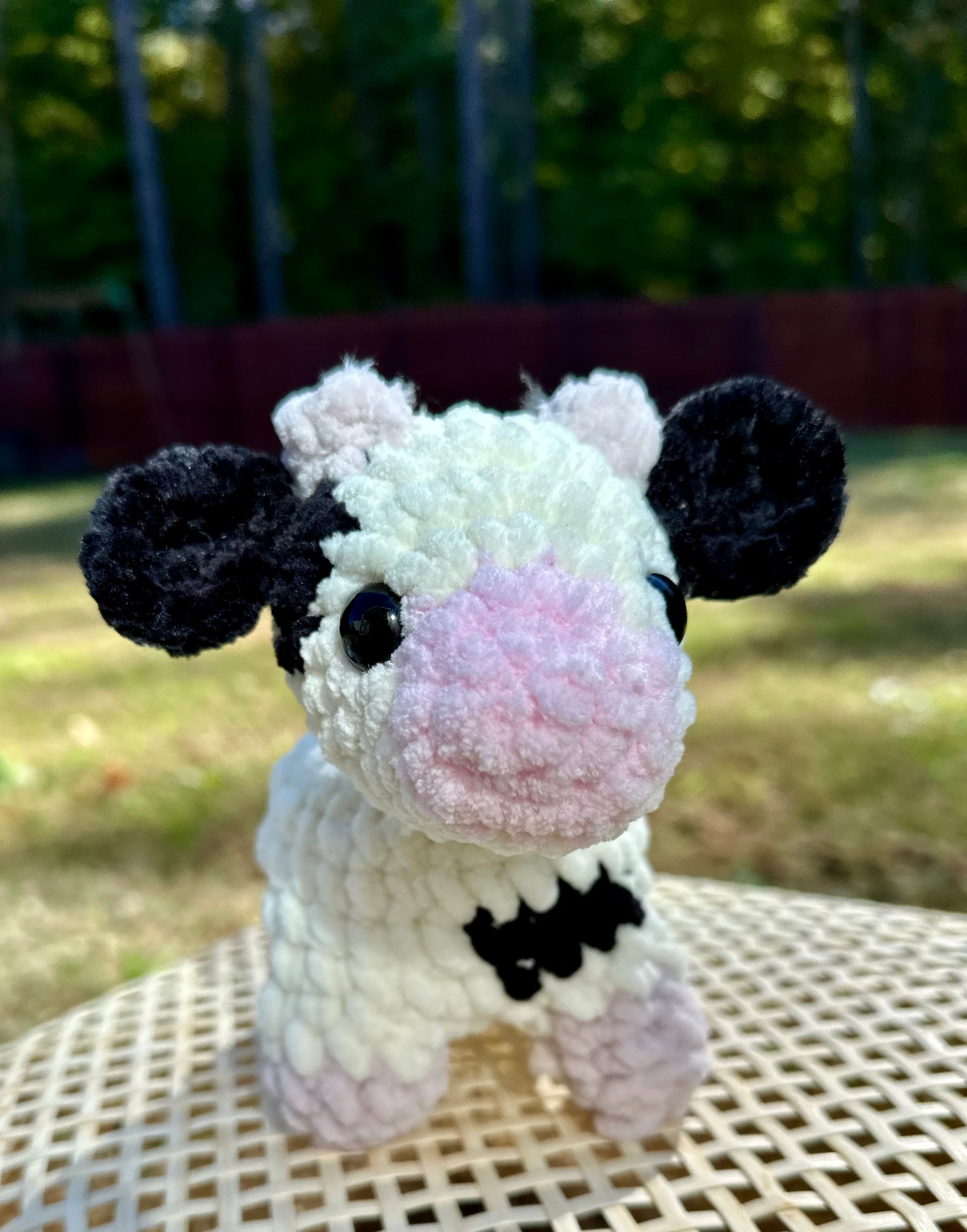 Handmade crochet baby cows that come in a variety of colors. Standing at 6 inches tall, these adorable cows are the perfect addition to any collection. Made with care and precision, these stuffed animals provide a unique and charming touch to any room.
