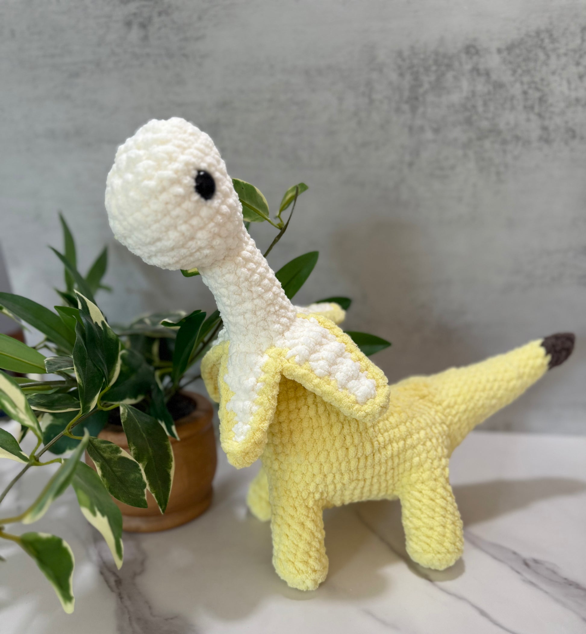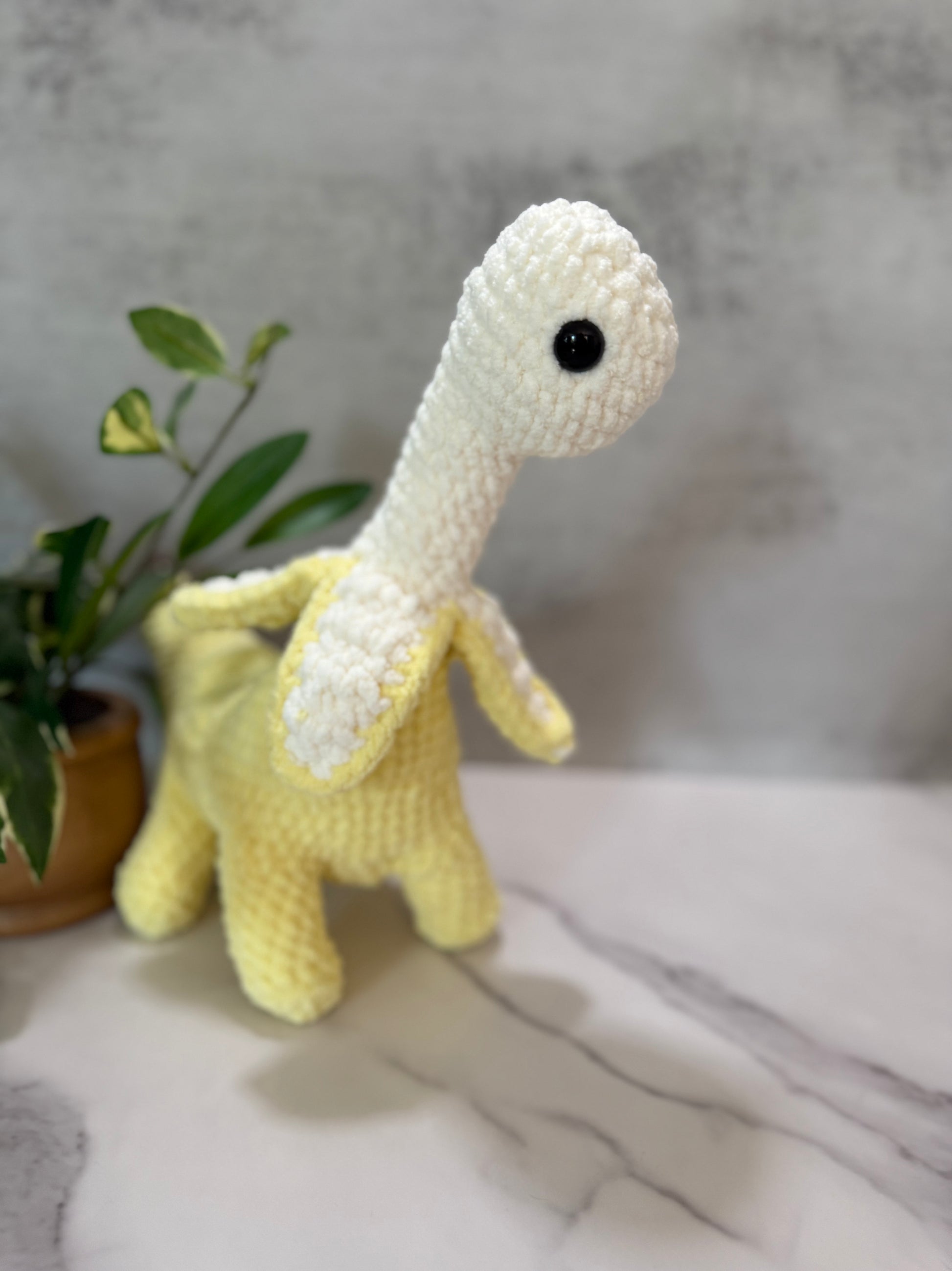 Get ready for a wild ride with Bananasaurus! This handmade crochet toy is one-of-a-kind and promises to add some playful fun to your collection. Totally unique and ready to rock, Bananasaurus is the perfect companion for anyone looking for an unconventional twist on the classic toy.