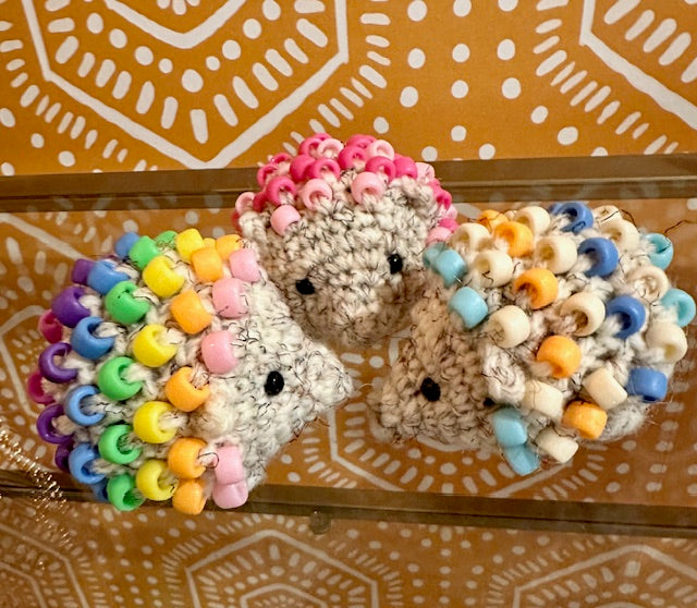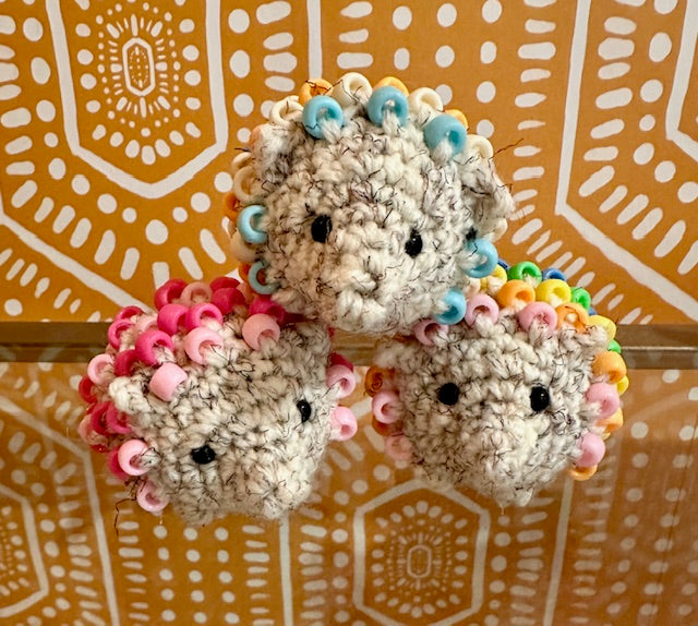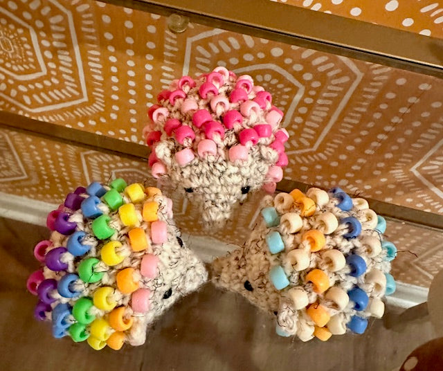 Roll it, flip it, squeeze it! These adorable fidget hedgehogs can be a great tool for kids or adults with ADHD or autism. They fit in the palm of your hand. The beads are all securely fastened on and the eyes are safety eyes.