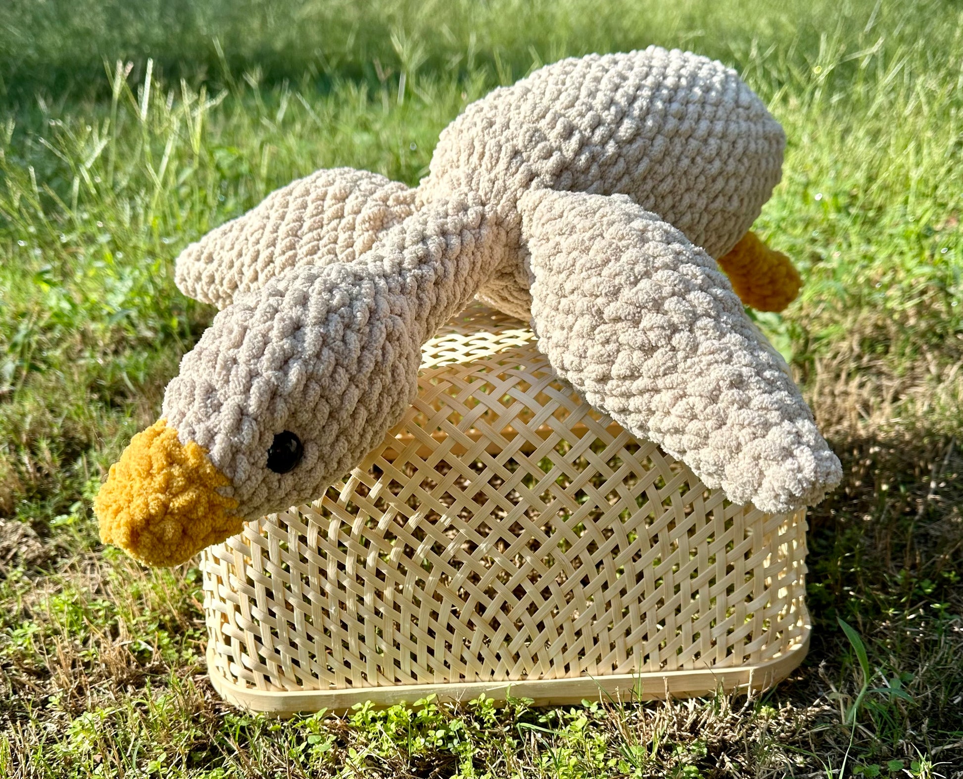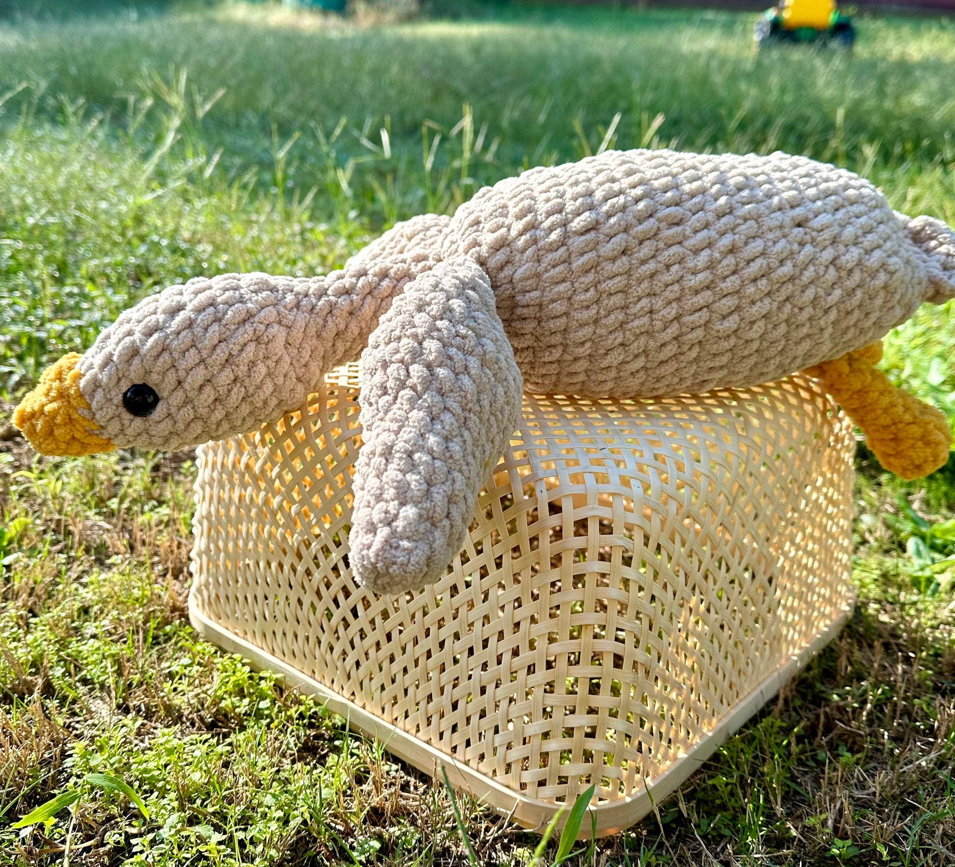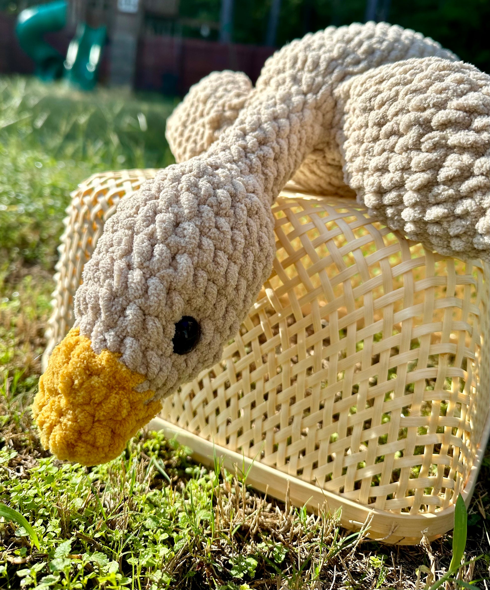 OMG this goose is absolutely the best cuddle buddy. I handmade him out of super soft blanket yarn. He’s very squishy!