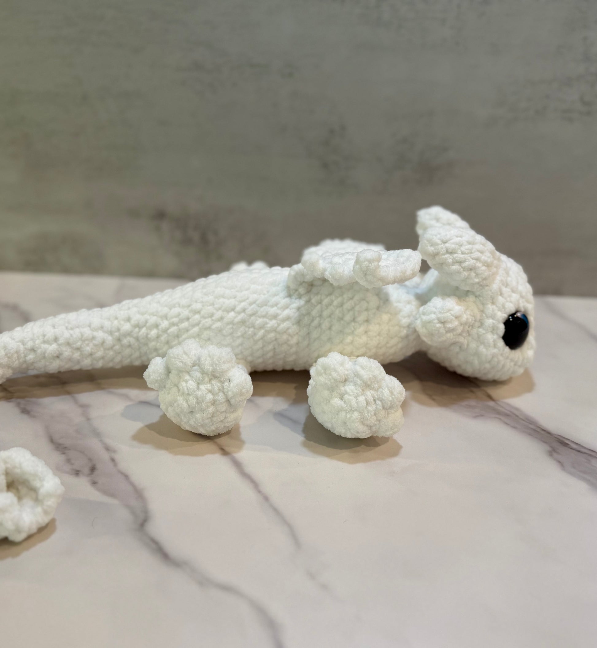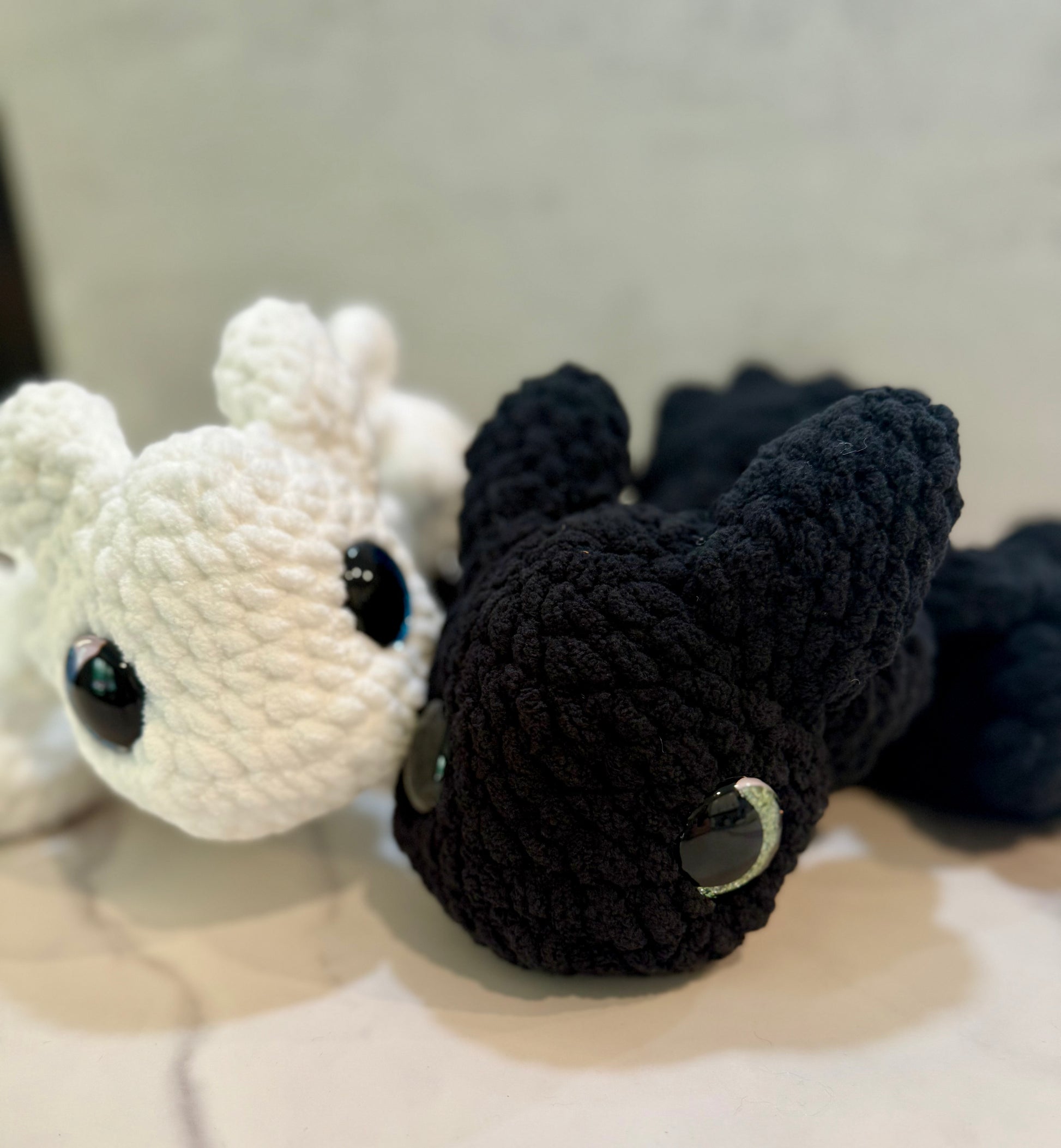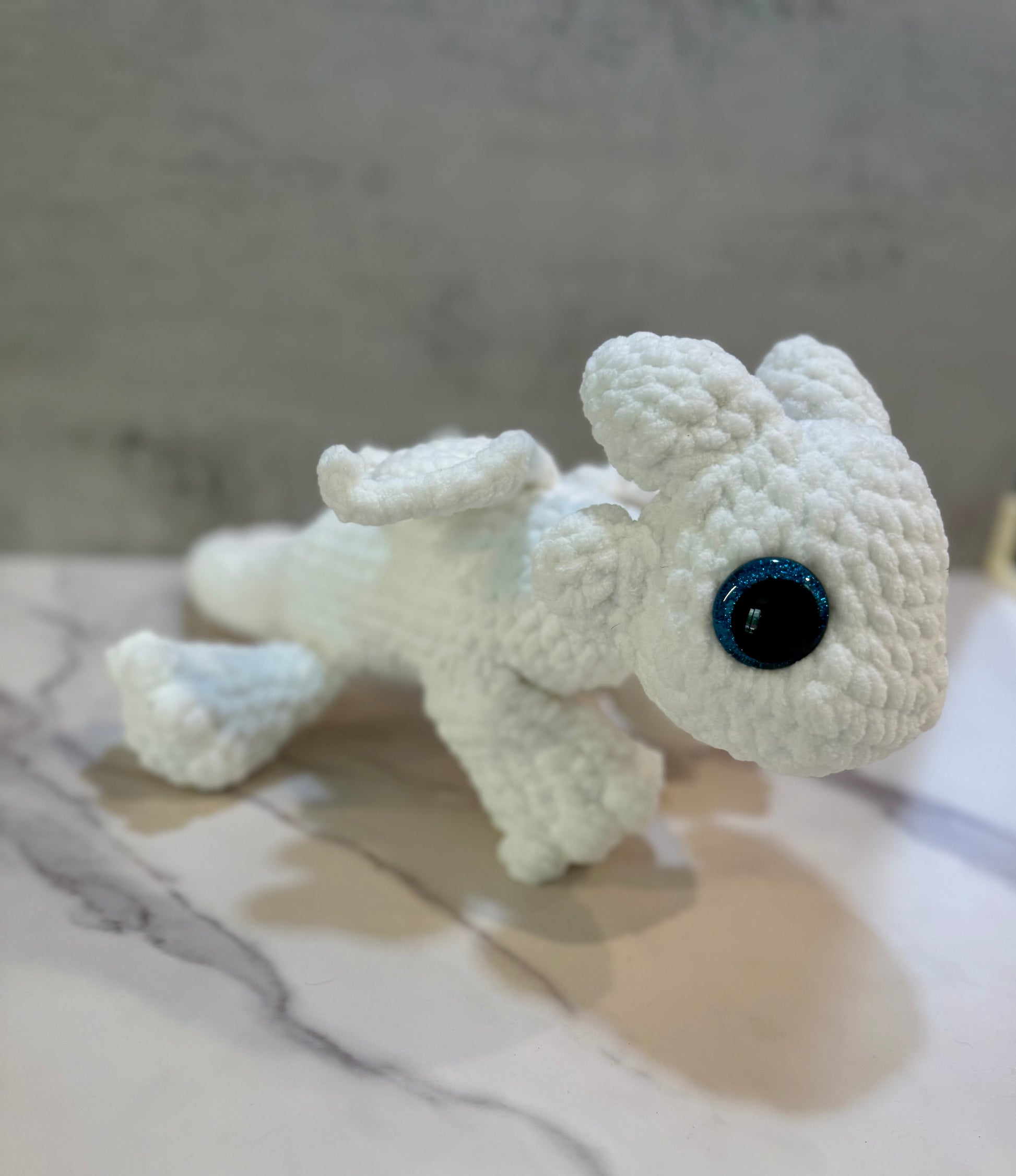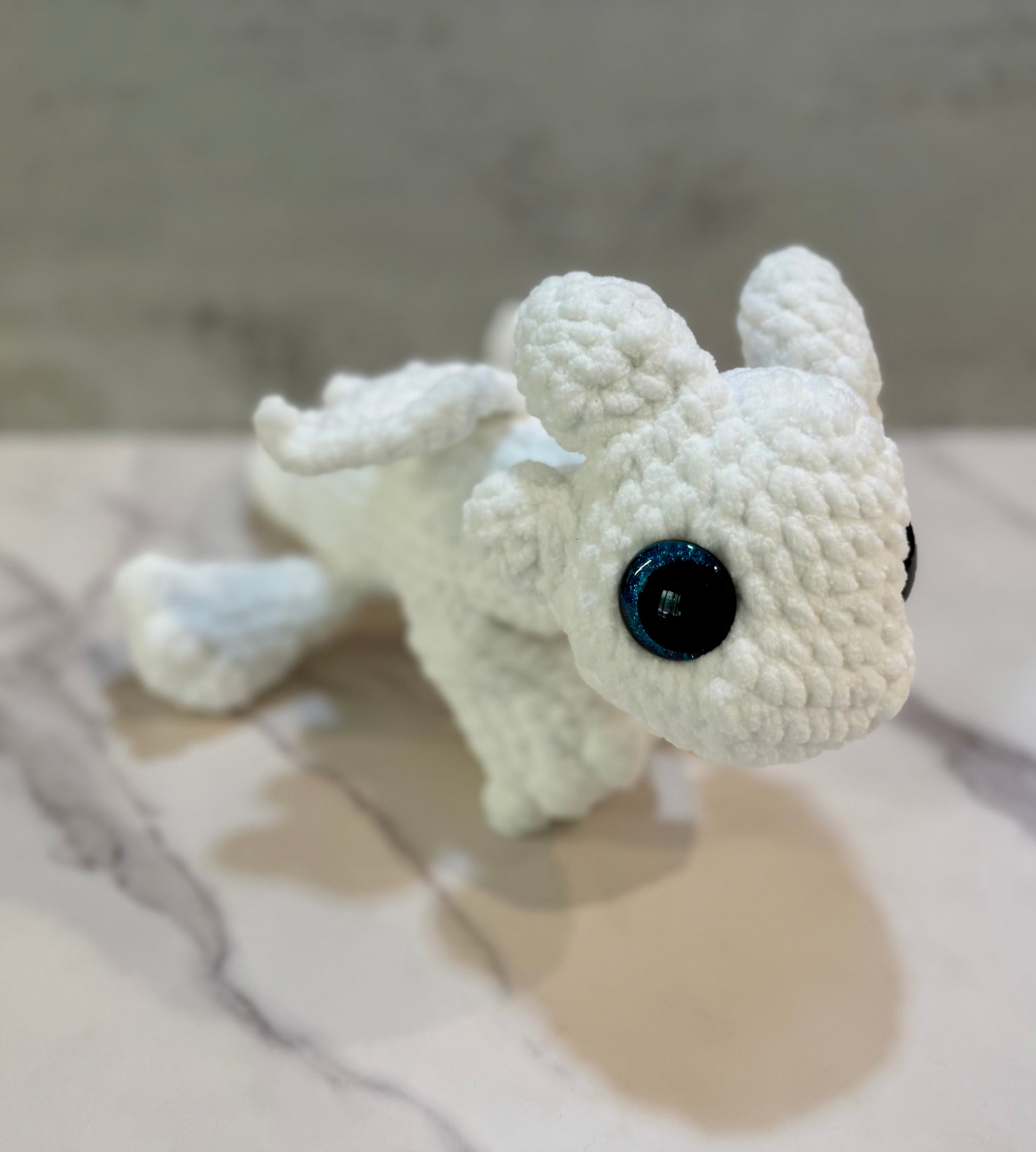 Meet Luna, the cuddliest dragon around! Handmade with soft, cozy blanket yarn, this Luna toy measures 25 inches from nose to tail. (Sorry, Toothless not included.) Perfect for fans of "How to Train Your Dragon".