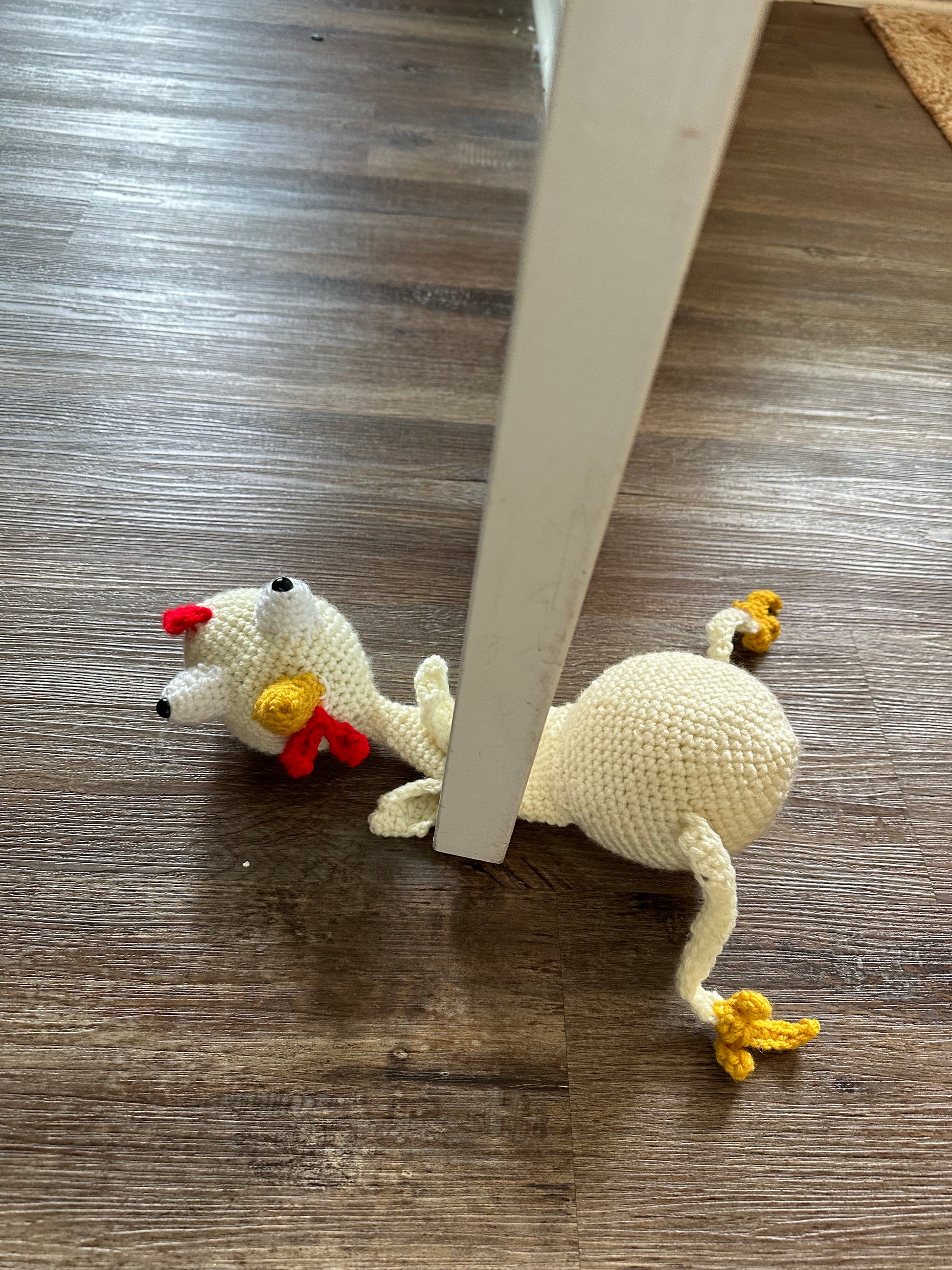Cluckkk!!!! The chicken doorstop is the most clever way to keep your door opened. I handmade this eye popping creation!