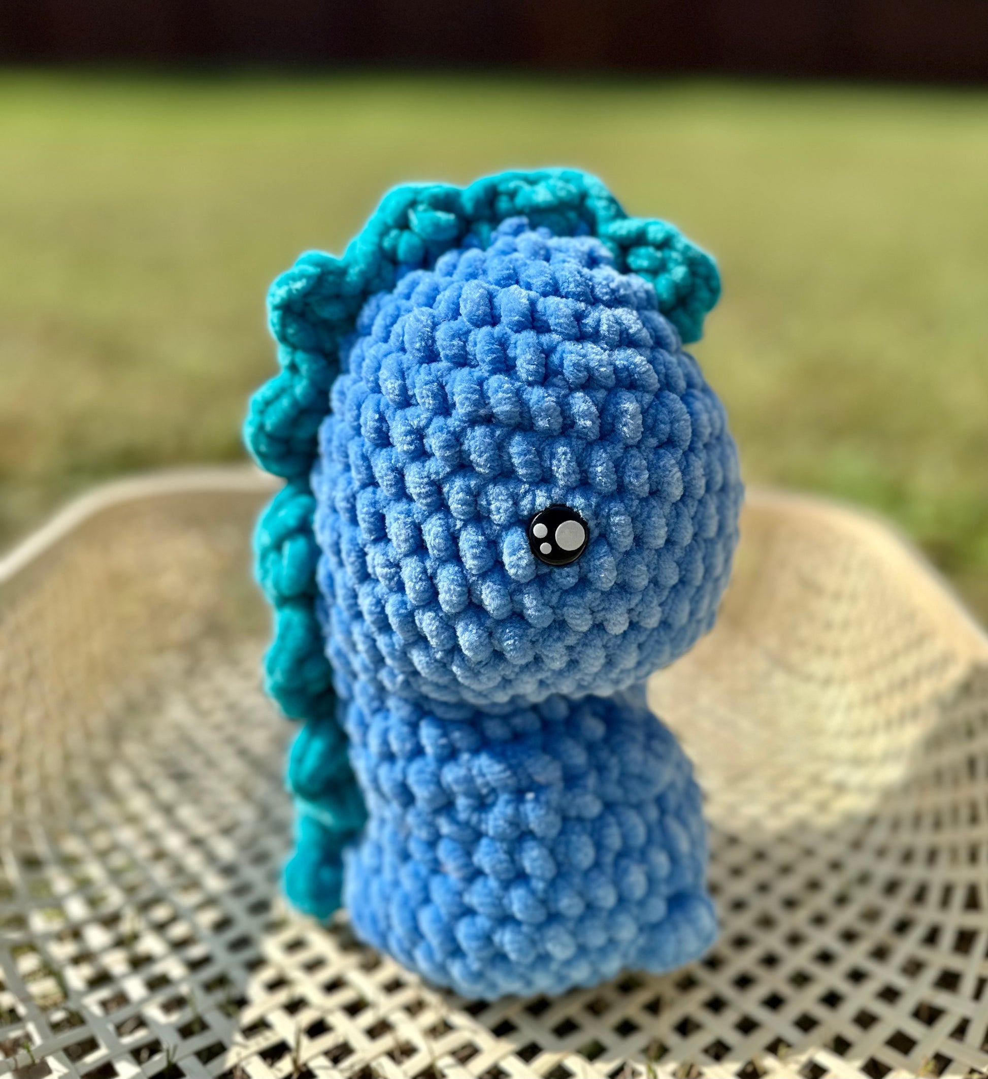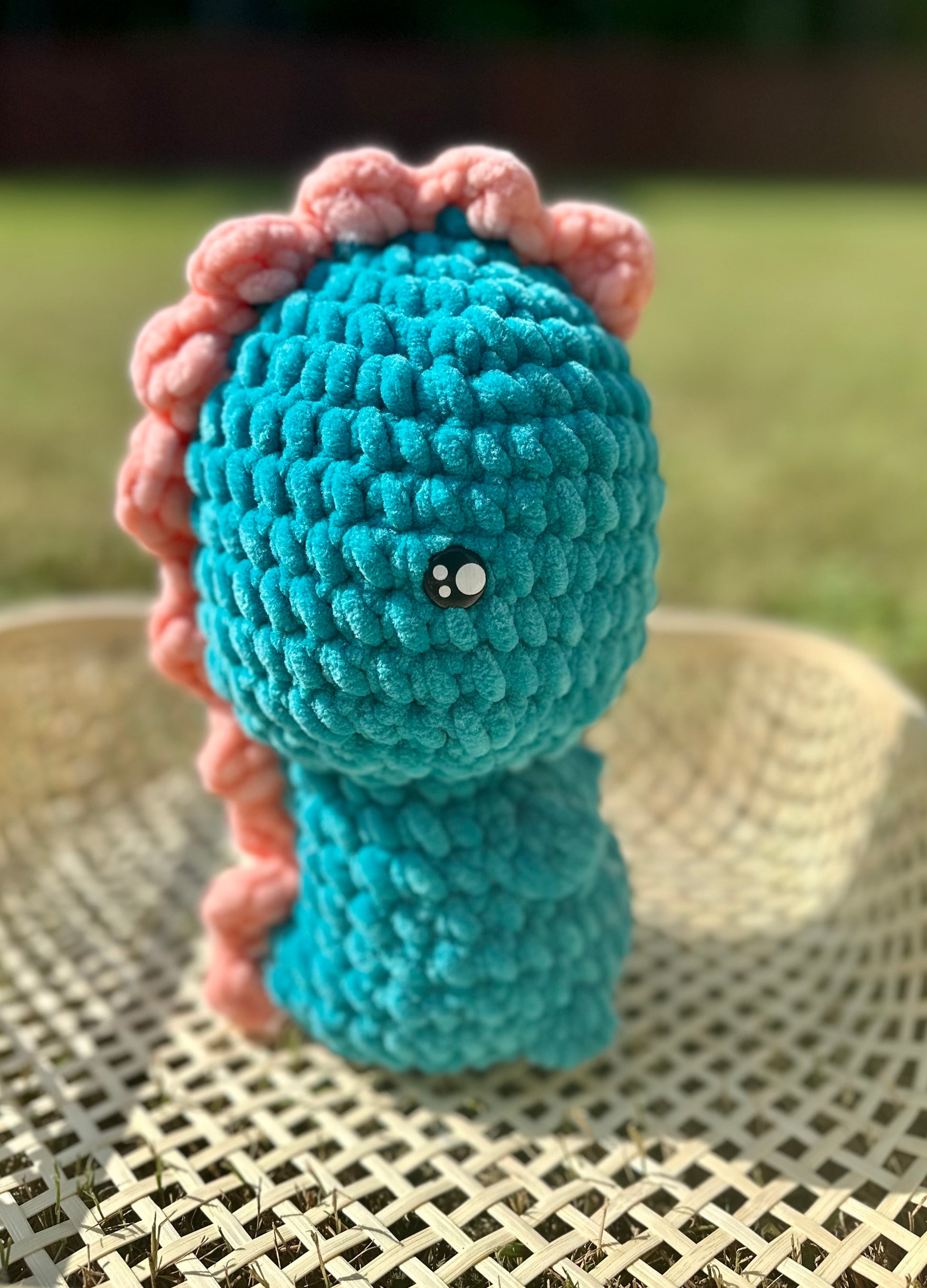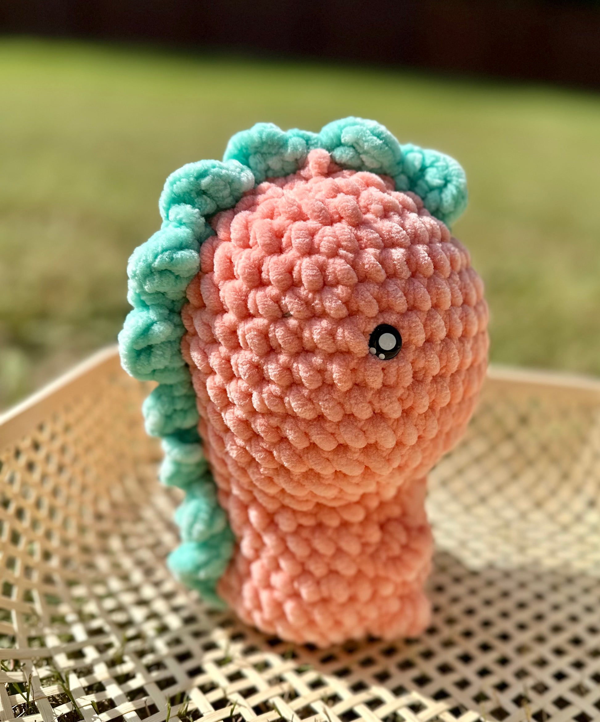 These dinosaurs are made out of super soft squishable yarn. They are about 10 inches tall. All my crochet items are hand washable.