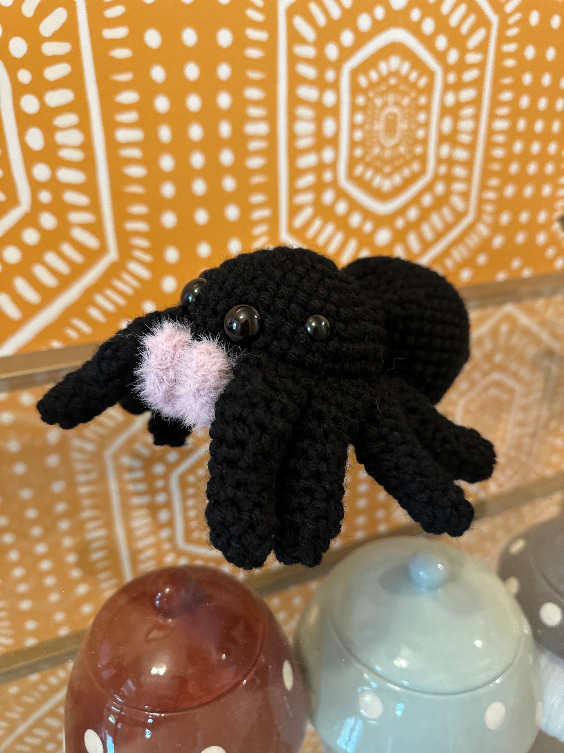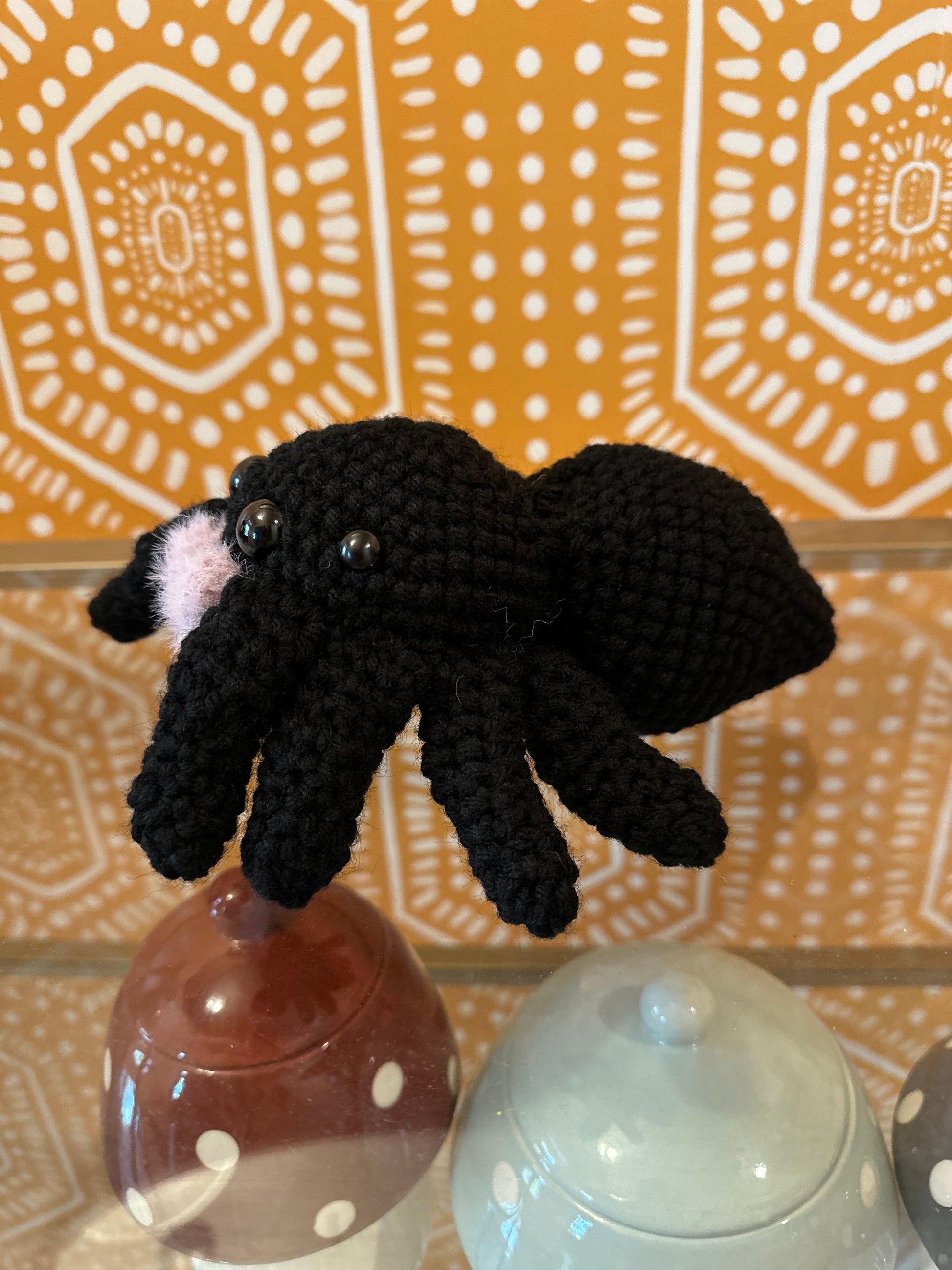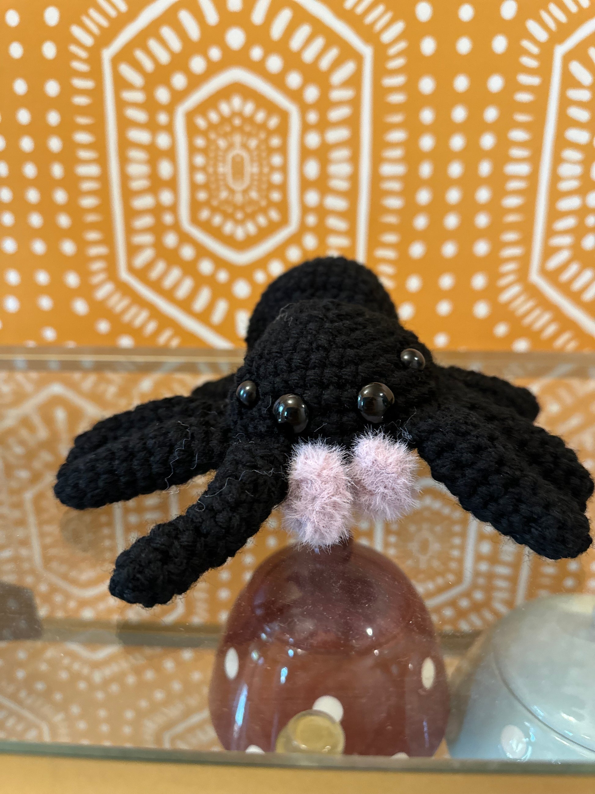 Introduce your child to a new world of fun with our Black Jumping Spider! This crochet toy will provide endless entertainment as it jumps and bounces around. Made with high-quality material for durability, this spider will be your child's new favorite playmate. Safe for all ages. Order now!